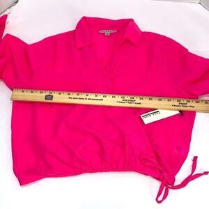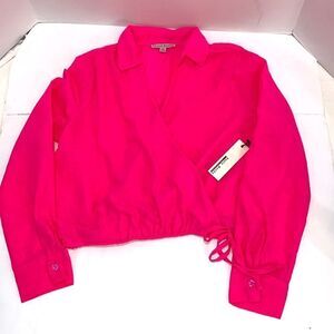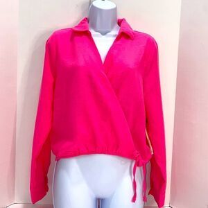 Haute Monde Women's Faux Wrap Long Sleeve Blouse In Pink Size Medium