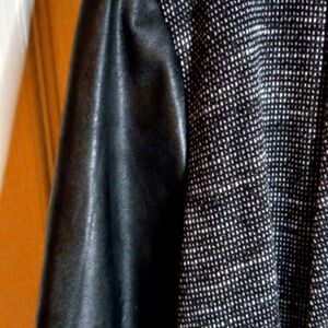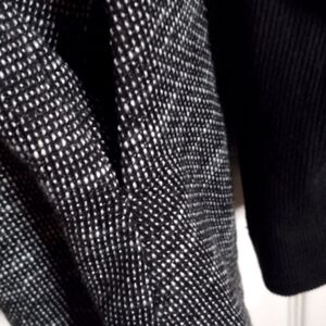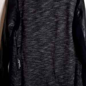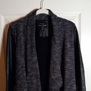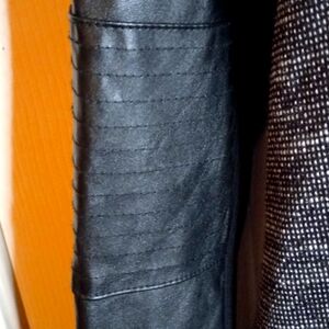 Haute Monde Women's Medium Black & White Tweed Sweater with Faux Leather Sleeves