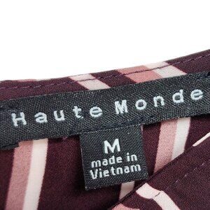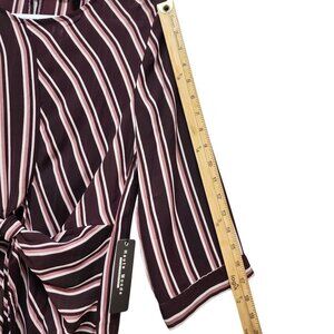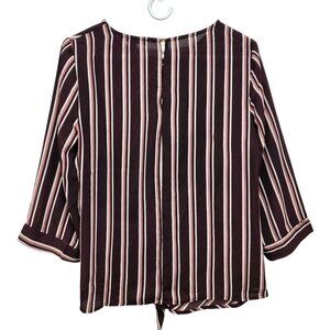 Haute Monde Womens Striped Burgundy Pink Tie Front Blouse Top 3/4 Sleeves Size M