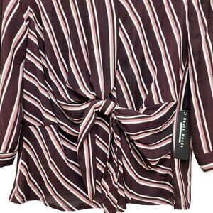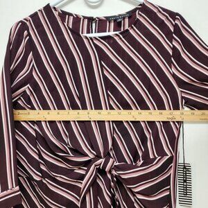 Haute Monde Womens Striped Burgundy Pink Tie Front Blouse Top 3/4 Sleeves Size M