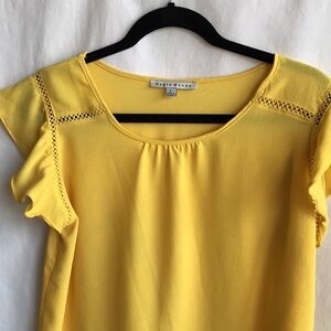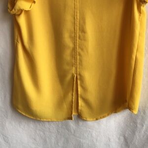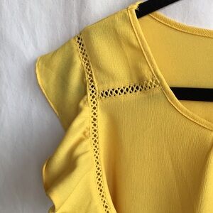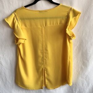 Haute Monde bright yellow flutter sleeve top. Size L. 7” center back slit. Good preowned condition. Machine-washed in cold and it turned out fine, despite label recommendations.