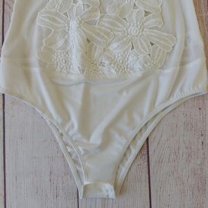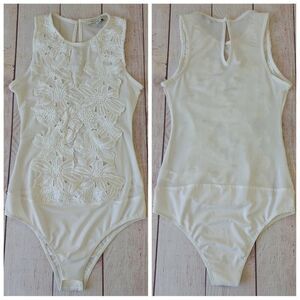 Haute Monde White Floral Mesh Lace Bodysuit sz M