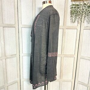 Haute Project Los Angeles Gray Pink Boho Waterfall Cardigan Sweater Tribal Large
