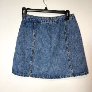 Haute Rogue Denim Mini Skirt Womens Size S Blue Embroidered Floral Buttonfly