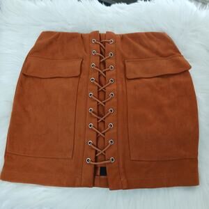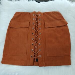 Haute Rogue Faux Suede Lace Up Skirt NWOT
