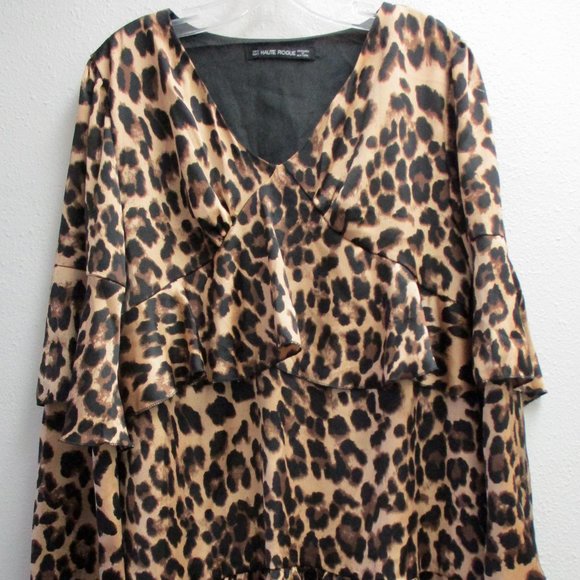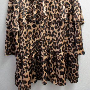 Haute Rogue Leo Ruffle Leopard Print Long Sleeve Dress Size Small