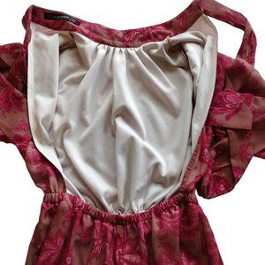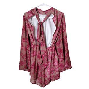 Haute Rogue Romper Womens XS Open Back Long Bell Sleeve Elastic Waist Tie Neck