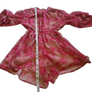Be the belle of the party with this Haute Rogue romper. The multicolor floral pattern with long bell sleeves and a high neckline will surely make you stand out. The romper has an elastic waist and a tie closure at the neck, making it comfortable to wear.
