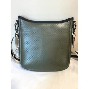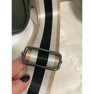 Haute Shore Blake Neoprene Black Green White Stripe Crossbody Bag