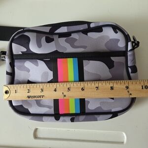 Haute Shore Neoprene Drew Camo Compact Crossbody With Stripes Adjustable Strap