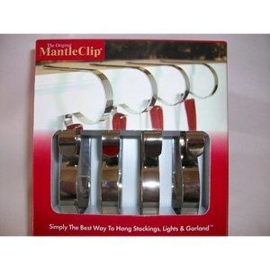 Haute The Original Mantle Clip Set 4 Silver Christmas Stocking Hangers Holders