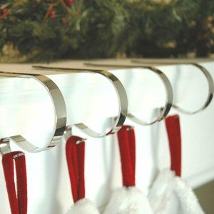 The Original Mantle Clip Set 4 Silver Christmas Stocking Hangers Holders