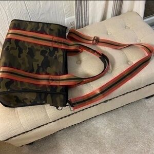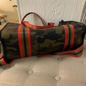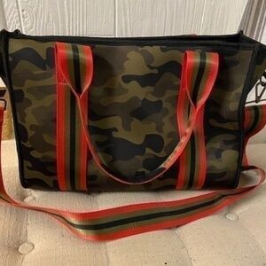 Camo trimmed in red striped handles in like new