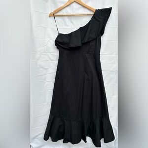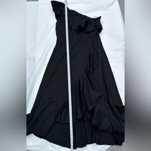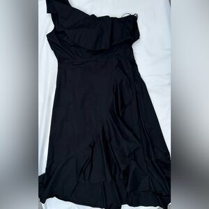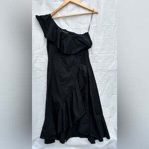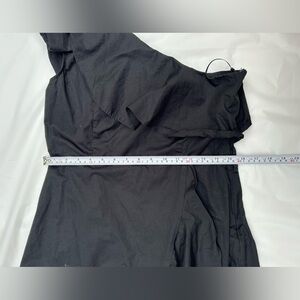 Haute rouge designed in New York ruffle wrap black dress one shoulder