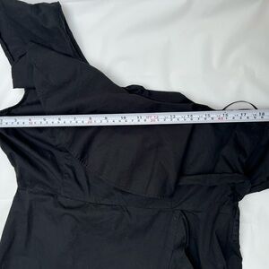 Haute rouge designed in New York ruffle faux wrap black dress one shoulder