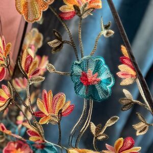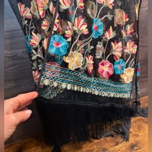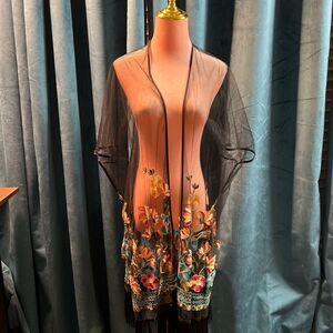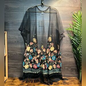 Haute Hippie Black Mesh Floral Embroidered Fringe Boho, Festival Kimono, OS, NWT