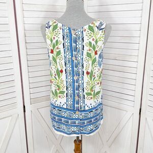 Haute Hippie Floral Boho Button Back Sleeveless Tank Top White Blue Small