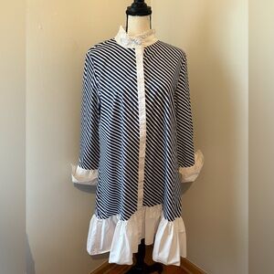 HauteLook CQ by CQ Contrast Ruffle Bottom Stripe Print Shirt Dress Size Large