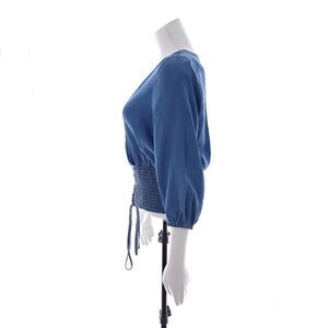Haute Monde Junior's Size Small Solid Blue Tencel Denim Shirt