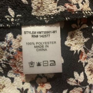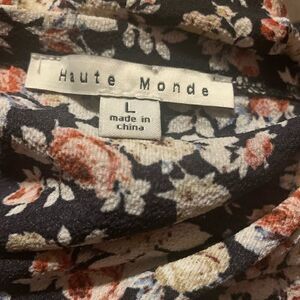 Haute Monde Floral Off Shoulder Top. Black multi floral off shoulder flare top. Elasticized shoulders. Long flowy sleeve with lace cuffs. 100% polyester. Size: large. Preowned in good condition.
