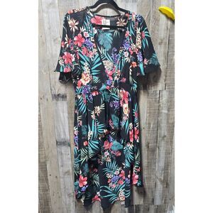 Haute Project Black Floral Mullet High Low Duster Maxi Cardigan