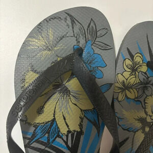 Great condition- minimal signs of wear. Fun Hawaiian floral print on these comfy foamy sandals. Perfect for your next beach trip!