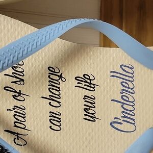 Charming Cinderella design. Cream base with blue straps. Perfect for casual wear. women's Havianas. sz 41/42, US 9/10. New without tags