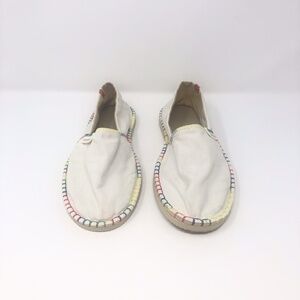 Brazil's original and authentic flip flop has a new companion! containing the same rubber sole used as the flip flop, this canvas espadrille is adorned with rainbow stitching to add some flare while providing comfort and function