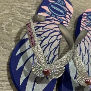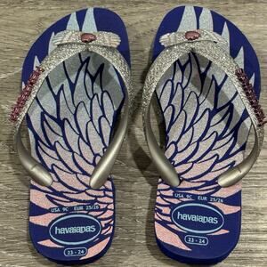 Havaianas Girls Kids Slim Glitter Sandals, Marine Blue, Size 9C (18-24months)