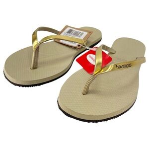 Havaianas Golden Metallic Womens Thong Slide Sandals Size 7/8