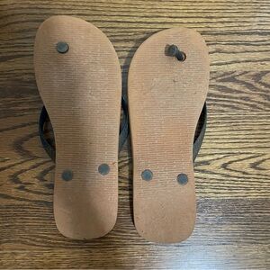 This listing is for two pair of men's Havaianas flip flops. Both are size 9/10. The brown pair shows wear but the blue pair is still in great condition.