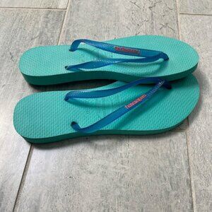 Havaianas Slim Flip Flops Sandals Blue Green Women's Size 7/8 NWT