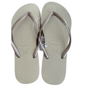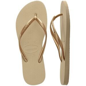 Havaianas Slim Flip Flops for Women: Sand Grey/Golden, SZ 11/12, Iconic Comfort