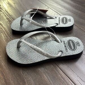 Havaianas Slim Gloss Black & metallic thong flip flops,cushioned footbed,summer