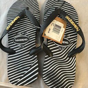 Havaianas Slim Logo Metallic Zebra Flip Flops Women Size 6, Men 5 NWT