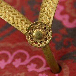 Nice flip flops from Havaianas Slim featuring a stylized floral pattern in pink, teal, black, and gold. The straps are metallic gold accented with a tiny gold medallion. Textured sole. All man-made materials.