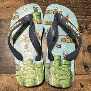 Excellent condition! Fun Super Mario scene on footbed. Some of the comfiest flip flops your child will ever wear!
