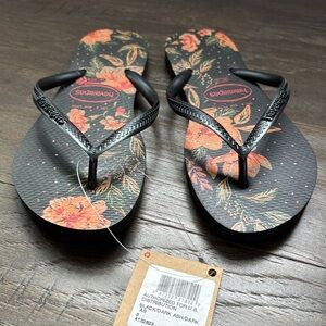 Havaianas Thong flip flops,tropical floral,cushion footbed,rice pattern sole
