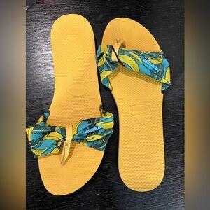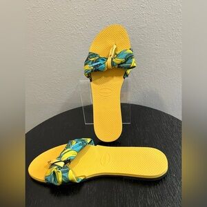 Havaianas Yellow Leaf Print Sandals - Size 9