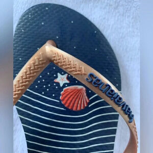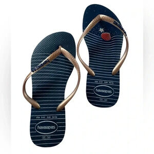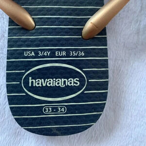 Havaianas Youth Slim Nautical Flip Flops - Navy Blue/Rose Gold/Navy Size 3/4 New