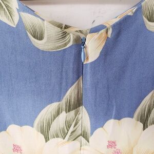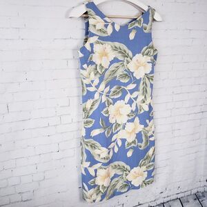 Havana Jacks Cafe Hawaiian Dress Size Small Light Blue Hibiscus Floral Sheath. Really nice quality dress. Has a hidden back zipper. No lining but substantial rayon woven fabric is not to light or too heavy. Very good pre-owned condition, no flaws.