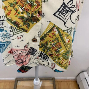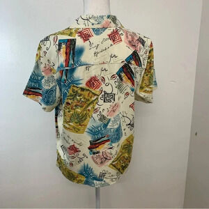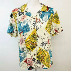 Havana Jacks Cafe Shirt Blouse Woman Medium Novelty Print Short Sleeve Tropical