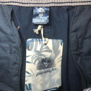 *Havana Jim Mens Shorts Size 40 Navy Zip Draw String 100% Cotton Comfort Pockets