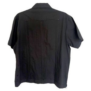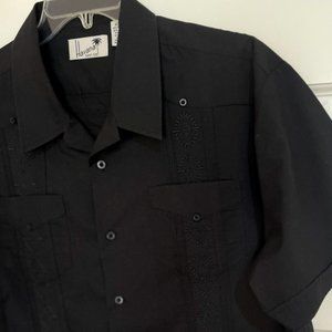 Havana Mens Button Up Shirt XL Black Embroidered Casual Hawaiian Short Sleeve