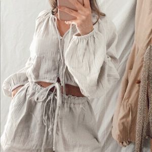 Beautiful light grey textured flirty set perfect for any occasion. 100% cotton super soft.