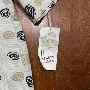 This Havana Shirt Co. shirt is perfect for any casual occasion. Made with 100% rayon, it features a stylish all-over print in tan and black. Its short sleeves make it perfect for warmer weather, and it comes with extra buttons in case of need. Brand new with tags.