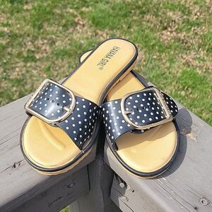 Gently preloved. Eur size 36 Tan sole with black and white polka-dots. Both the insole and bread look good.