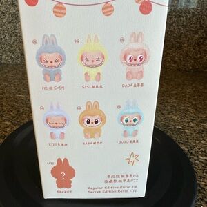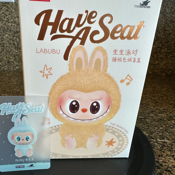 This an authentic Ququ (teal) Have a seat Labubu. It was purchased in a Pop Mart Store. Bottom of the box was opened to identify which Labubu it is. The top of the box slightly damaged but still sealed and the bag itself are sealed to get the experience of unboxing. No picture of the Labubu was taken to retain the seal of the bag. The plastic card identifies what is in the bag.
