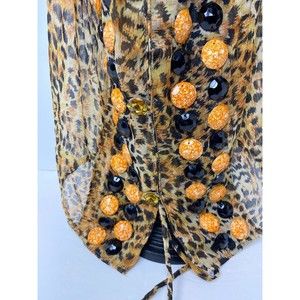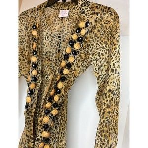 Have Faith Swimwear Leopard Print Coverup, Beaded Rhinestones Details Small