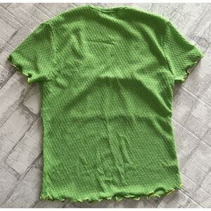 Have Girl Y2K Green V Neck Short Sleeve Ruffled Hem Knit Crop Top No Sz